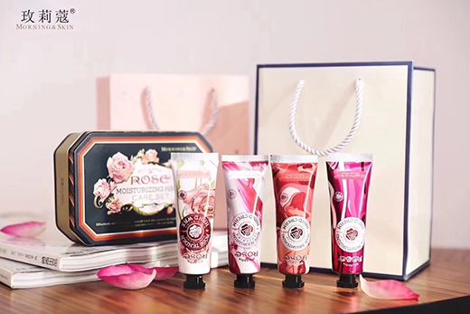 亮膚美手霜:提亮手部膚色:玫瑰精油中含有硒、鋅、銅、維c等微量元素,具有抗氧化和淡化黑色素的作用,改善暗沉粗糙雙手,重煥雙手嬌嫩,維系雙手細嫩水潤的狀態,長期使用增加雙手肌膚彈性。