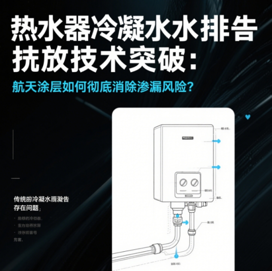 將航天涂層應(yīng)用于熱水器冷凝水排放系統(tǒng)中,能夠從多個(gè)方面徹底消除滲漏風(fēng)險(xiǎn)。
