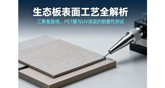 在定制家具與家裝市場中,生態板憑借環保性與性價比成為主流板材之一,而表面工藝直接決定其耐用性與美觀度。本文通過科學實驗數據,深度解析三聚氰胺浸漬膠膜紙、PET裝飾膜及UV固化涂層三種主流表面處理工藝的耐磨性能差異,為消費者與行業從業者提供專業參考。