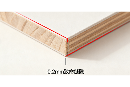 封邊機是生態(tài)板加工過程中的關鍵設備,其主要作用是通過熱熔膠將PVC封邊條與板材邊緣粘合在一起,形成密封保護層。然而,由于設備精度不足、操作不當或封邊條質量問題,封邊機在工作過程中可能會留下0.2mm左右的縫隙。這個看似微小的間隙,卻為水分侵入提供了通道。