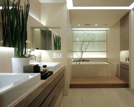 有條件的住戶可以把浴室與連廊、里院相連,打造療養(yǎng)風(fēng)格的愜意空間浴室的設(shè)計,由洗澡方式?jīng)Q定。“生活型”的人可以把浴室布局在起居室、餐廳、廚房或臥室旁邊,內(nèi)設(shè)整體衛(wèi)浴,使用方便、易于清潔。而“休閑型”的人可以大膽劃出一部分面積,建造療養(yǎng)風(fēng)格的浴室。例如,不將浴室布局在起居室、餐廳、廚房、臥室附近,而是將其與連廊、里院相連,并充分屏蔽外部視線。帶著外出泡溫泉股的心情去洗澡,出浴后一邊飲酒邊納涼,樂趣無窮。