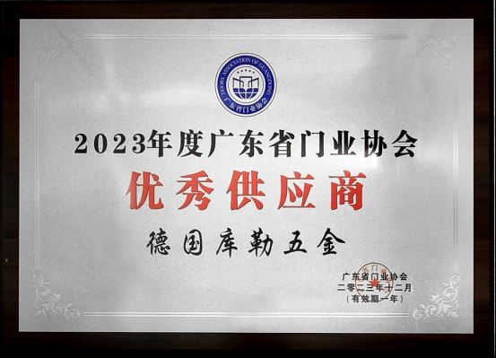 2023年12月20日,廣東省門業協會年會暨門窗供應鏈博覽會在佛山潭洲國際會展中心舉行。庫勒五金憑借卓越表現再次喜獲2023年度優秀供應商稱號,為其在門窗五金行業的卓越表現贏得了連續五年的高度認可。