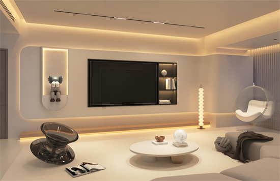 燈帶的運(yùn)用更是無主燈設(shè)計(jì)的一大亮點(diǎn)。它可以隱藏在天花板的四周、柜體的邊緣或者地腳線等位置。在天花板周邊安裝燈帶,可以營造出一種 “懸浮” 的視覺效果,使空間更具層次感。在柜體內(nèi)部安裝燈帶,不僅可以照亮內(nèi)部物品,方便取用,還能為柜體增添一種精致的氛圍。地腳線燈帶則在夜晚提供了柔和的低位照明,方便人們在夜間行走,同時(shí)也為空間帶來一種溫馨的氛圍。
