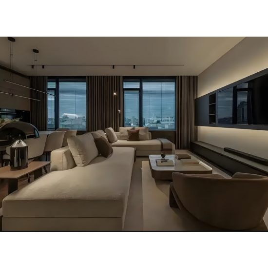 無主燈照明通過點、線、面的照明系統,實現了空間照明的一次概念延伸。這種設計使得光線成為空間的裝飾材料,能夠根據空間的具體需求,通過合理的燈具布局營造理想的光環境。這樣的設計不僅讓頂部空間更加簡潔大氣,避免了傳統吊燈對空間的壓迫感,還提高了空間的視覺開闊感和利用效率。