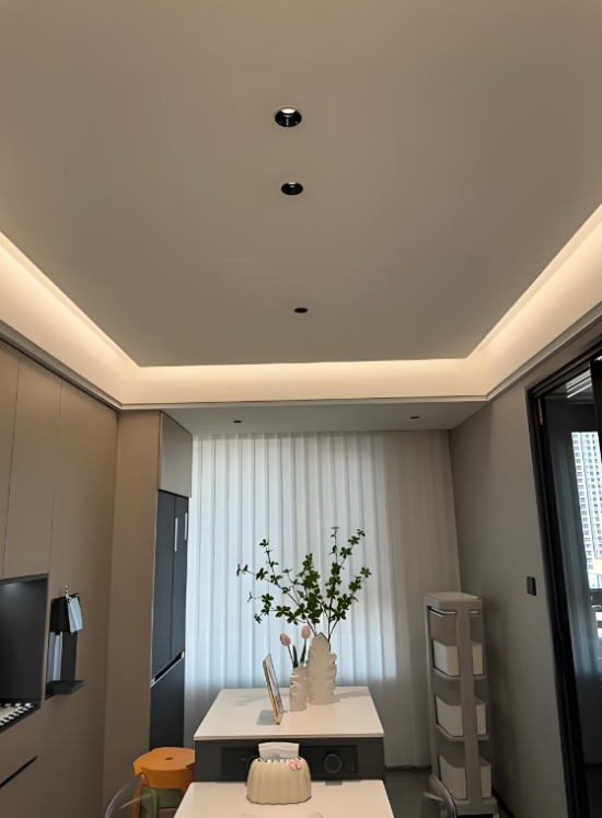 結(jié)合智能科技,無主燈系統(tǒng)可通過定時開關和感應器進一步節(jié)省能源。例如,人在時自動開啟燈光,離開時關閉。