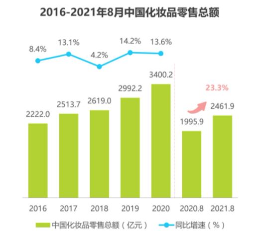 據艾瑞咨詢《2021年中國功效護膚品行業研究報告》顯示,2016年-2021年8月份化妝品零售總額累計16209億元。在4萬網民樣本中健康皮膚人群僅占14.2%,72.1%的人群認為自己有皮膚亞健康情況,對于皮膚問題64.3%的人群會選擇自行用藥或忍受。
