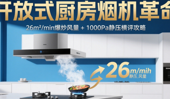 在現(xiàn)代家居設(shè)計中,開放式廚房越來越受到人們的青睞。它打破了傳統(tǒng)廚房的封閉格局,使廚房與餐廳、客廳融為一體,營造出更加寬敞、通透的空間感,讓烹飪不再是一件孤立的事情,家人和朋友可以在烹飪過程中更好地互動。然而,開放式廚房也面臨著一個嚴峻的問題——油煙處理。如果煙機性能不佳,油煙就會彌漫到整個家居空間,影響室內(nèi)空氣質(zhì)量和生活品質(zhì)。今天,我們就來一場關(guān)于具備26m3/min爆炒風(fēng)量和1000Pa靜壓煙機的橫評,為你在選擇適合開放式廚房的煙機時提供參考。