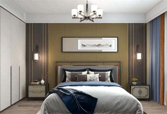 與其它空間不同的是,父母的房間風格以新中式為主,房間內的色調以沉穩寧靜、樸素平和為主,這樣的搭配更適合老人的心情,也能契合他們對裝修上的需求。