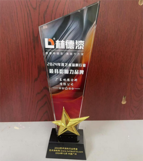 緊接著,12月7日的藝術涂料微水泥行業年會,林德漆再次大放異彩,一舉奪得“2024年度藝術涂料行業最具影響力品牌”與“2024年藝術涂料十佳源頭工廠”兩項重量級獎項。這些榮譽不僅是對林德漆品牌實力的肯定,也是對其在藝術涂料領域深耕細作、不斷創新的最好證明。林德漆以藝術之名,將科技與美學完美融合,為市場帶來了眾多兼具創意與實用性的涂料解決方案,滿足了消費者對美好生活的向往。