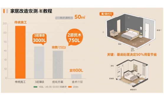 在我們的實測案例中,施工人員采用了“薄涂多遍”的方法,每次涂刷的厚度控制在合適的范圍內,這樣既能夠保證涂料的均勻性和質感,又能夠有效減少用量。經過實際測量,相比傳統的涂刷方法,這種方式節省了近1/2的涂料用量。