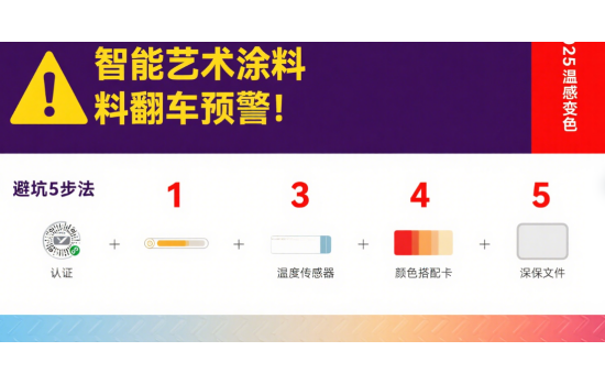 在當(dāng)今裝修市場,智能藝術(shù)涂料品牌因其獨特的魅力,尤其是溫感變色這一神奇特性,吸引了眾多消費者的目光。溫感變色涂料能夠根據(jù)環(huán)境溫度的變化呈現(xiàn)出不同的色彩,為家居環(huán)境增添了一份獨特的浪漫與科技感。然而,市場上智能藝術(shù)涂料品牌眾多、質(zhì)量參差不齊,消費者在選購溫感變色涂料時很容易陷入各種陷阱。本文將為大家詳細介紹2025年溫感變色涂料選購的避坑5步法,幫助大家輕松選購到滿意的產(chǎn)品。