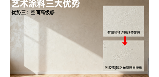 此外,藝術涂料的二次裝修便利性也不容忽視。其可直接在原有涂層上復涂更新花色,無需鏟除基層,既節省工時又減少建筑垃圾,符合當下“低碳裝修”的趨勢。