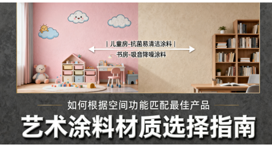 在室內(nèi)設(shè)計領(lǐng)域,藝術(shù)涂料作為提升空間質(zhì)感的重要載體,其材質(zhì)選擇直接影響空間功能的實現(xiàn)與居住體驗的優(yōu)化。不同功能區(qū)域?qū)ν苛系男阅苄枨蟠嬖陲@著差異,盲目追求裝飾效果而忽視材質(zhì)適配性,往往導(dǎo)致使用過程中出現(xiàn)褪色、開裂、霉變等問題。本文將從空間功能特性出發(fā),系統(tǒng)解析藝術(shù)涂料的材質(zhì)分類標準、性能參數(shù)與匹配邏輯,為消費者提供科學(xué)的選購參考框架。