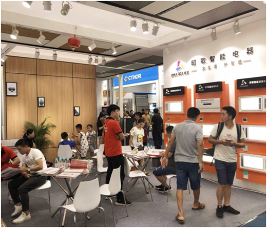 現代時尚的展廳風格,更加注重空間布局和使用功能的結合,追求潮流時尚,以各類現代化元素為點綴,打造簡約、舒適、優雅的家居環境。昭歌大氣的展廳風格吸引了來自全國各地的經銷商和代理商,展會首日,昭歌智能電器便旗開得勝,簽下不少訂單,成了許多意向客戶新的心儀品牌。