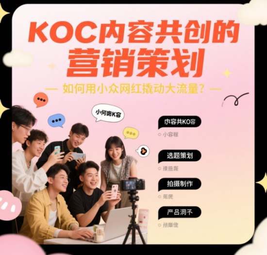 在當今競爭激烈的營銷領(lǐng)域,如何以創(chuàng)新且高效的方式吸引大流量成為了眾多品牌和營銷人員關(guān)注的焦點。KOC(關(guān)鍵意見消費者)內(nèi)容共創(chuàng)的著名營銷策劃品牌為我們提供了一條新的思路,尤其是利用小眾網(wǎng)紅來實現(xiàn)大流量的撬動。