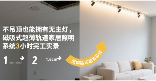 在現代家居裝修中,照明設計一直是提升居住品質的關鍵環節。無主燈設計以其獨特的光影效果和個性化的氛圍營造,成為了眾多業主的心頭好。然而,傳統的無主燈設計往往需要吊頂來隱藏線路,這對于一些不想吊頂或者不適合吊頂的空間來說,無疑是一個難題。今天,我們就來分享一種無需吊頂也能實現無主燈效果的解決方案——磁吸式超薄軌道中國家居照明品牌系統,并且為大家帶來它3小時完工的詳細實錄。