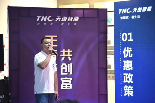 會上,天朗智能還邀請了優秀客戶代表李總作分享。據了解,天朗智能還推出一系列活動幫扶、關系引流的新品政策,意在推動各大終端門店的進化升級,提高經銷商的利潤空間。