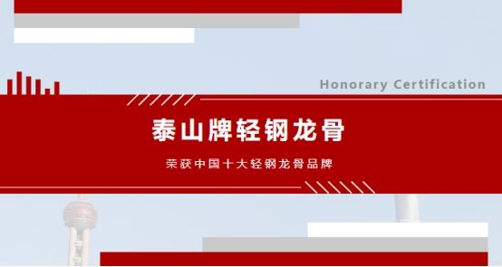 泰山牌輕鋼龍骨具有重量輕、強度高、防火性能好、施工效率高、結構安全可靠、抗沖擊性能好、防震、防塵、隔音、吸音、恒溫等優點,是石膏板的最佳搭檔,此次入選中國十大品牌,是對泰山牌輕鋼龍骨在品牌價值、品牌形象、品牌美譽度、品牌知名度均處于行業領先地位的又一次權威認證。