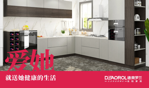 德奧羅蘭定制全鋁櫥柜配套的設計更注重人性化和環境保護,給媽媽布置一個操作方便的廚房空間,將洗滌區、操作區、儲藏區分配清楚,將廚房工作化繁為簡,為媽媽營造一個舒適整潔的廚房環境,讓她在日常操勞中獲得輕松和快樂。