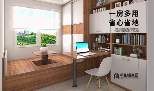 像卓益鋁家居將“榻榻米床+衣柜+書架”結合在一起的設計方式,既能提供大量的儲物空間,又能創造個性與休閑的家居氛圍,美觀實用兩不誤!