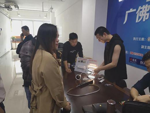 會后,小鴉呱呱智能還在現場初步展示了一些智能化照明燈具產品,如幻彩LED燈帶、多變LED筒燈、不同感應方式的櫥柜衣柜燈具等,吸引了眾多全鋁家居企業的關注,紛紛現場咨詢,提出自己的疑問。