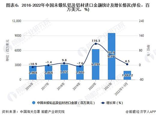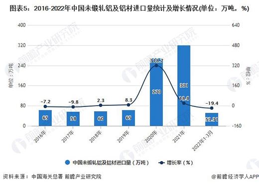 2022年一季度中國未鍛軋鋁及鋁材進(jìn)口量突破50萬噸