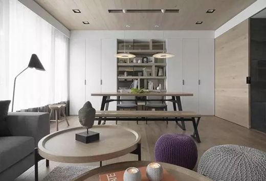 黑白灰在木色的調和之下,顯得非常的自然與恬靜。