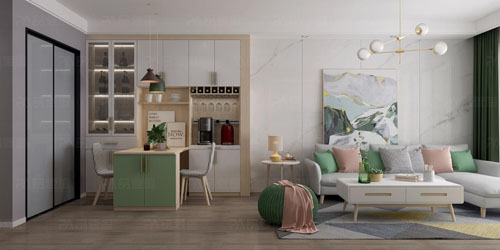 “挪威春天”系列展示空間:玄關、餐廳、客廳、廚房、榻榻米、臥室、書房等多功能空間。