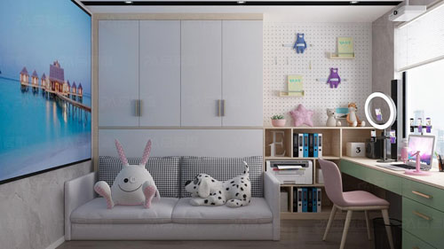 品愛全屋定制“挪威春天”系列,承襲北歐設計靈感:簡練、自然、溫暖,充滿人性關懷;原木色柜體、暖白門板,搭配橄欖青色:清新、活力、靈動。該系列結合精巧設計的收納功能和細節,特別適合初次置業的年輕族群。