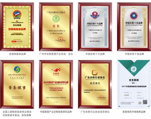 經過十余年發展,合生雅居已成為定制家居行業領先品牌,是廣東省綠色供應鏈協會執行會長單位,廣州市定制家居行業協會會長單位,廣東省四川南充商會常務副會長單位,中國家具協會常務理事單位,廣東衣柜行業協會成員單位。