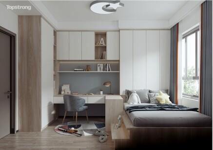 有限的兒童房空間,劃分動(dòng)靜分區(qū),不僅美觀大方,功能實(shí)用性強(qiáng),讓這里可以工作、學(xué)習(xí)、休閑娛樂。合理化的布局凸顯設(shè)計(jì)師獨(dú)特的設(shè)計(jì)手法,同時(shí)被原木暖色包圍的空間碰撞出寧?kù)o、典雅的氛圍。
