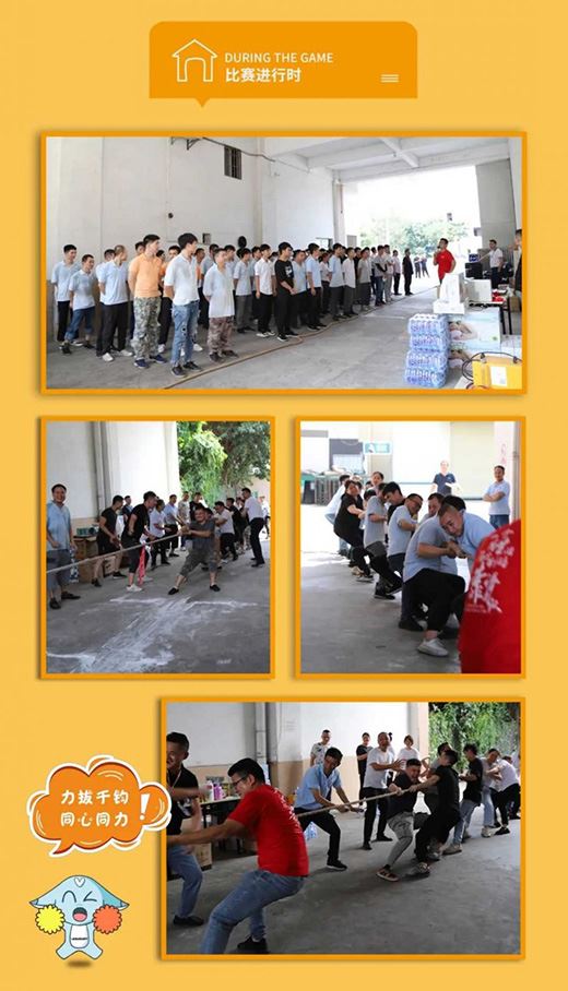 下午15點,隨著各位家人的到來,本次活動也正式拉開了序幕。本次拔河比賽的隊伍分別有7隊,分別有沃格1號隊、沃格2號隊、沃格3號隊、沃格代表隊、冠軍隊、靠譜隊和倉儲隊、比賽采取抽簽加復(fù)活的方式進行兩兩pk。