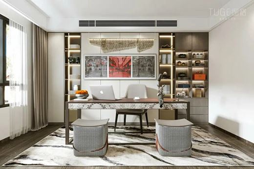傳統(tǒng)的老式書(shū)柜一般只具有擺放書(shū)籍的功能和普通外觀,而定制出來(lái)的柜子卻創(chuàng)意多得多,充分利用空間,可以擺放一副裝飾畫(huà),畫(huà)擺放在柜子里可以起到較好的裝飾、點(diǎn)綴作用,將柜子整體包裝成書(shū)房裝飾品的一部分。