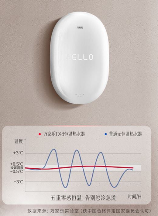 除了外觀顛覆傳統(tǒng)廚衛(wèi)工業(yè)化形象,萬家樂AI恒溫零冷水燃?xì)鉄崴鳌簼櫽瘛粚嵱眯砸策M一步強化。如恒溫,一直是用戶對熱水器的核心訴求。但由于用水環(huán)境復(fù)雜,用戶沐浴時,只要家中有人同時用水,或是中途關(guān)水再開啟,都會造成水溫變化,帶來忽冷忽熱的糟糕沐浴體驗。