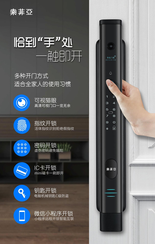 索菲亞指紋鎖,是全民智能家居生活的重要擁護者,也是智能門鎖產(chǎn)品的重要耕耘者。其憑借多年來在智能領(lǐng)域所積累的實用經(jīng)驗與所掌握的先進技術(shù),不斷為當代消費者帶來性價比高且時尚智能的指紋鎖產(chǎn)品,同時也為老百姓締造時尚便捷的新生活做出了非凡的貢獻。而在塑造產(chǎn)品、升級產(chǎn)品的過程中,索菲亞團隊善于總結(jié)其他智能產(chǎn)品的發(fā)展經(jīng)驗及尖端技術(shù),也善于結(jié)合門鎖的使用實際與潮流趨勢,力爭將智能科技運用得淋漓盡致,修煉出專屬于索菲亞的強大內(nèi)功。