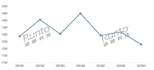 2021-2022Q3中國(guó)智能門鎖線上市場(chǎng)分季度均價(jià)走勢(shì)