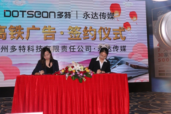 緊接著,在媒體鏡頭的聚焦下,多特總部代表與高鐵永達傳媒代表簽署合作協議并合影留念,這意味著在未來多特智能鎖品牌將隨著高鐵的前行去往更多更遠的地方,將品牌文化傳播到天涯海角!