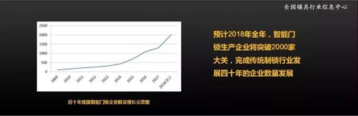 市場是有的,機會也是有的,但智能鎖行業(yè)仍面臨著不少的問題,其中最大的問題是分食的企業(yè)數(shù)量太多,100億的市場蛋糕分下去,有的企業(yè)根本吃不飽。據(jù)調(diào)研報告顯示,預(yù)計2018年全年涉及智能鎖生產(chǎn)的企業(yè)將突破2000家。