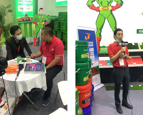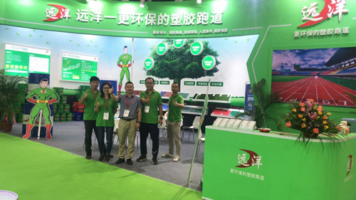 遠洋環保塑膠跑道創始人余向強、市場總經理辛業林、營銷副總熊宏偉、執行副總晁實、戰略定位顧問徐雄俊多位領導親自上陣展會現場,與業務精英團隊共同為一撥又一撥的客商溝通交流遠洋跑道材料產品優勢、體育行業前景和發展動態、合作模式和投資盈利分析等問題。憑借遠洋品牌魅力展現以及訓練有素的團隊服務水平,遠洋展位成為一道熱鬧非凡的風景線,迎來了現場多家媒體采訪。