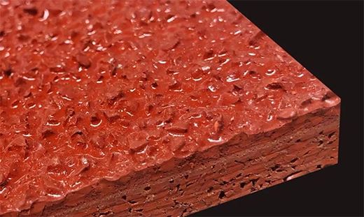 透氣型跑道是雙層噴涂聚胺酯跑道系統(tǒng)。基礎(chǔ)層為凈味MDI單組份膠水按照1:6.5的比例混合EPDM環(huán)保橡膠顆粒由攤鋪機(jī)一次攤鋪而成,面層為有色EPDM橡膠顆粒與1:1混合后用噴涂機(jī)分兩次噴涂而成。