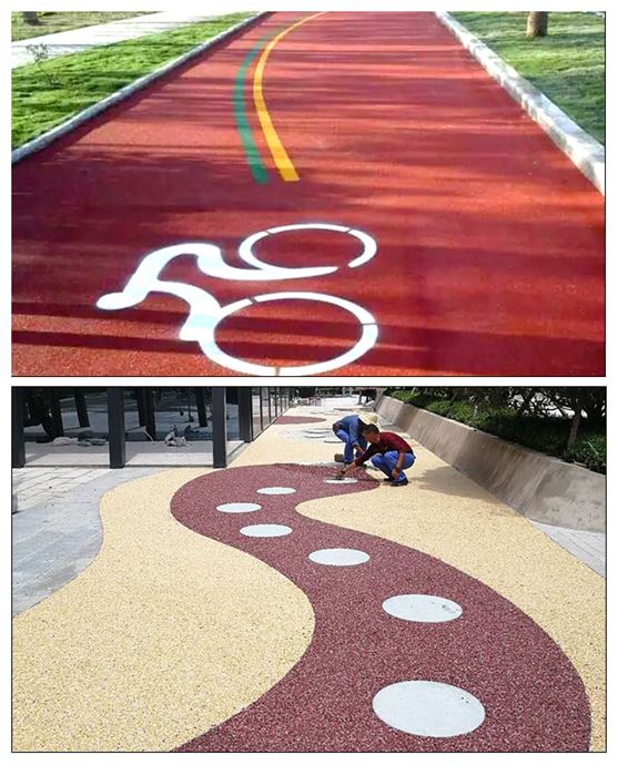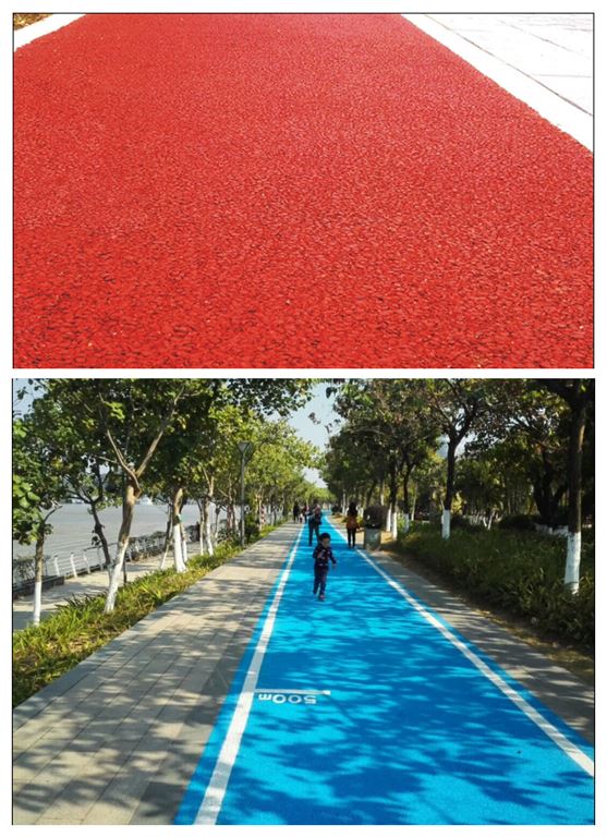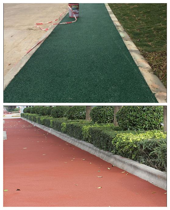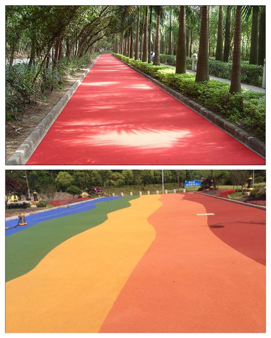 騰威公司生產(chǎn)的固瑞達(dá)透水路面膠粘劑S-13是國(guó)內(nèi)最成功、應(yīng)用最廣泛的彩色透水路面膠粘劑。不同于普通的混凝土透水路面,使用S-13鋪裝的彩色透水路面俗稱“膠粘石透水路面”,該路面有更好的施工性能,可以快速固化,路面表現(xiàn)更好的展色性、更高的防滑性能、更高的耐候性和凍融穩(wěn)定性。S-13膠粘劑是采用聚氨酯改性脂肪族環(huán)氧樹脂材料作為主料,結(jié)合填料、色漿、助劑混合組成的常溫交聯(lián)型彩色膠粘劑,也叫常溫高粘彩色瀝青漿料。S-13配合骨料專用于彩色膠粘石透水路面的鋪裝。