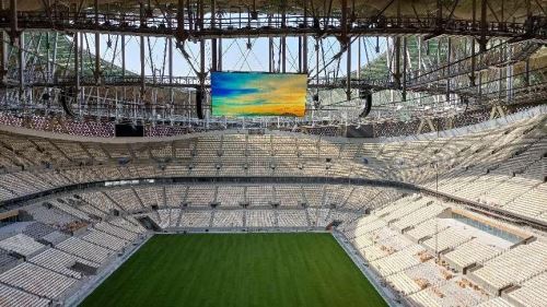 在本屆世界杯開幕式和決賽舉辦場地,同時也是卡塔爾最大的體育場——盧賽爾體育場(Lusail Stadium),位于球場兩端的大型LED記分屏,正是來自洲明科技的獨家作品。換句話說,在全球的賽事轉播鏡頭下,與球星一同閃耀的,還有來自中國的LED大屏。