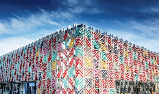 北京五棵松冰上運動中心是世界上單體面積最大的被動式超低能耗體育建筑,其外觀采用幾何線條組成五彩“冰菱花”,內部則充滿綠色科技。該建筑的格柵幕墻不僅具有美感,還能遮陽和節能;其二氧化碳跨臨界直冷制冰系統與傳統制冷方式相比可節約40%以上的綜合能耗;光伏發電系統每年可產生約70萬千瓦時的清潔電力,滿足部分用電需求,進一步降低能耗。