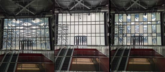本項目通過被動式建筑優化設計,控制體形系數僅為0.1,平均窗墻比為0.56,并在建筑立面設置遮陽格柵,有效減小夏季太陽輻射得熱;建筑內部多為開敞空間,立面增加開窗面積,室內通風效果良好;通過透光幕墻、下沉廣場的方式有效改善地上及地下主要功能房間的自然采光效果。