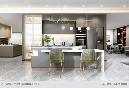 柜體采用的是擁有漸變流暢紋理的維拉煙熏橡木(淺),使得空間更顯動感,而高級灰的搭配,則讓整個(gè)空間彰顯著低調(diào)的奢華。
