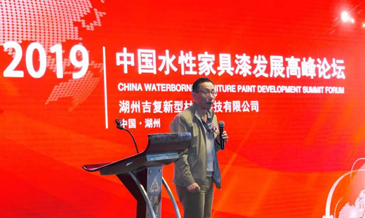 喬遷剪彩典禮后,在湖州南潯花園名都大酒店,湖州吉復新型材料科技有限公司邀請相關協會、涂料上下游、家具廠生產廠家等,共同商討水性家具漆的推廣大計,舉辦“2019 中國水性家具漆發展高峰論壇”,受邀嘉賓紛紛對水性家具漆的發展發表見解,分享心得,論道發展。