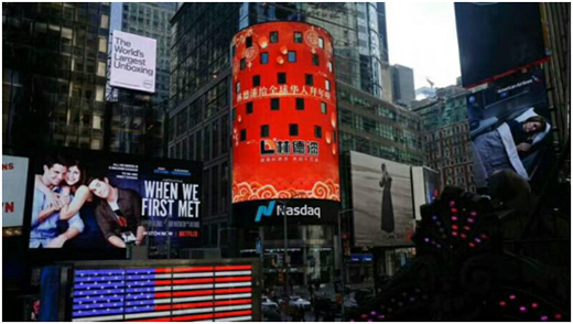 ·2018年春節期間,林德漆榮登美國紐約納斯達克證券交易所大屏幕進行榮譽展播,向全球華人道上一聲新春祝福。