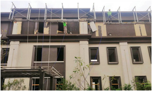 本次項目,林德漆使用的外墻漆,采用領先的配方技術,選用優質環保原料精制而成,是特別為大廈、公寓等戶外裝飾設計的外墻漆。其具有良好的防霉抗堿和耐候保色性能,能長久抵抗自然環境對建筑的侵蝕,對建筑外立面起到很好的保護裝飾作用。