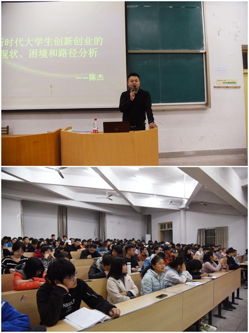 講座上,陳杰董事長向同學們介紹了“創新創業”的概念,并從國家需要、社會需要、個體需要三個方面說明了為什么要創新創業。陳董指出目前創新創業的現狀,并分享了對教育存在誤區、教育師資隊伍不完善、創新創業教育課程體系不健全等問題的看法。