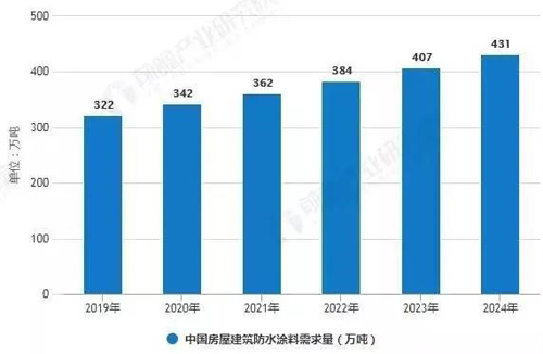預(yù)計2024年中國房屋建筑防水涂料需求將會突破430萬噸。